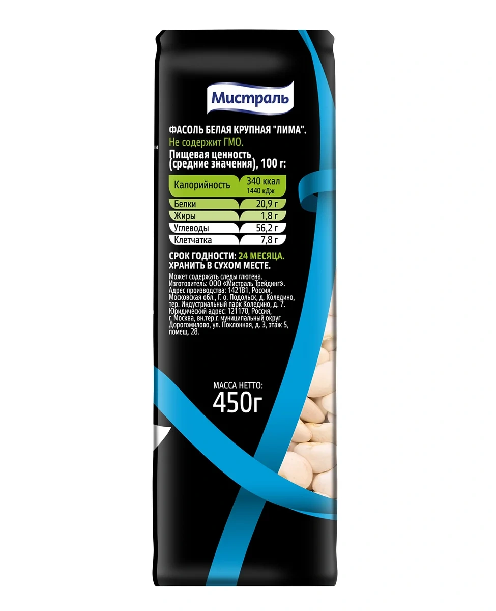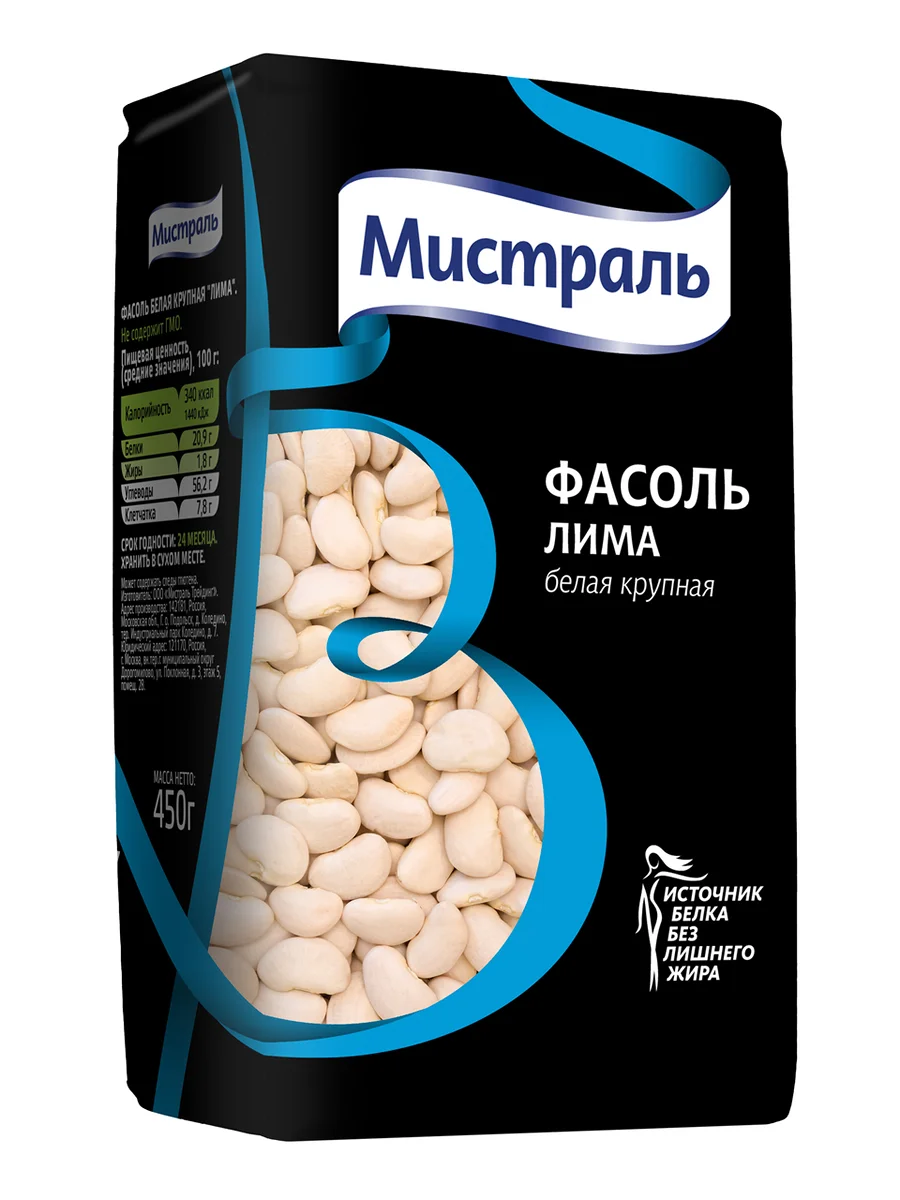 Фасоль Мистраль Лима белая крупная, 450г