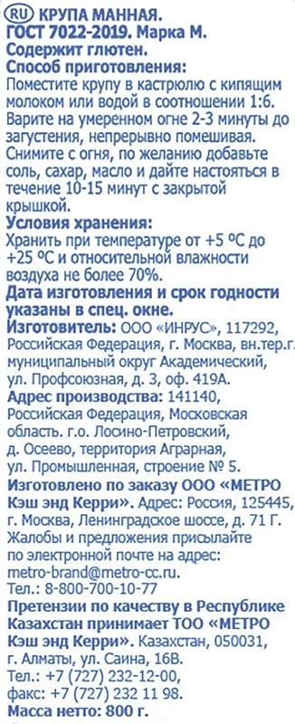 aro Крупа Манная, 800г