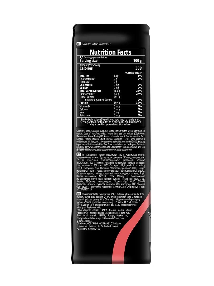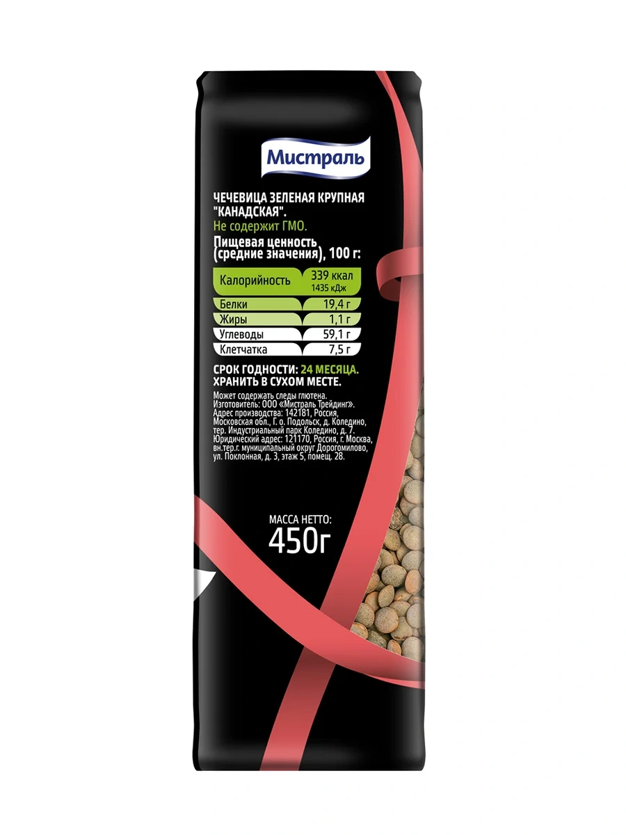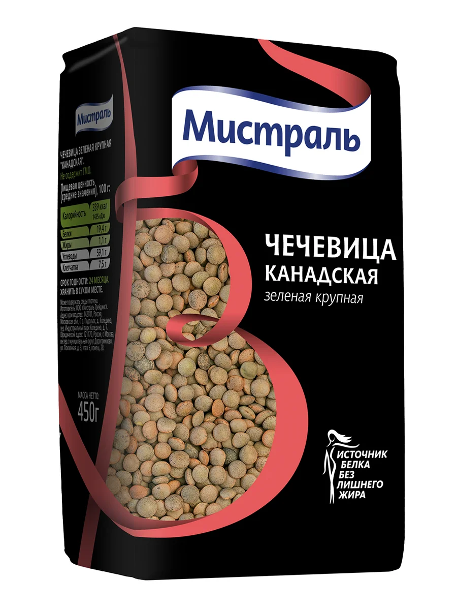 Чечевица Мистраль Канадская зеленая крупная, 450г