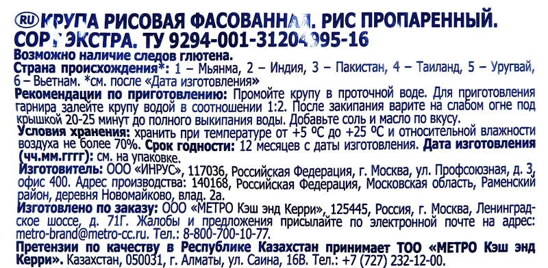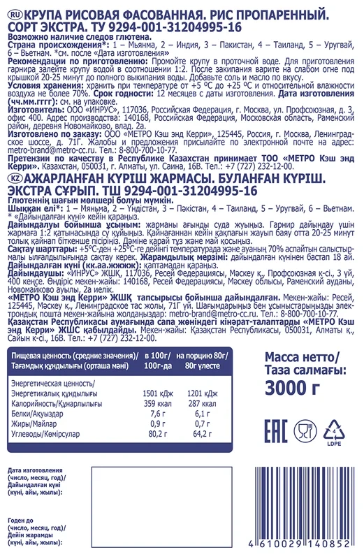 METRO Chef Рис Пропаренный, 3кг