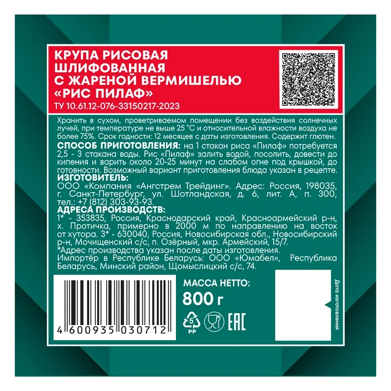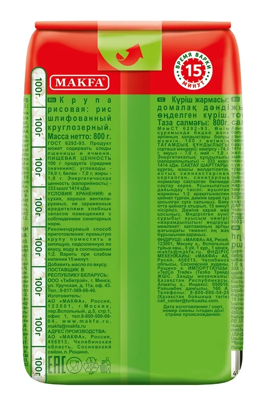 Рис Makfa шлифованный круглозерный, 800г