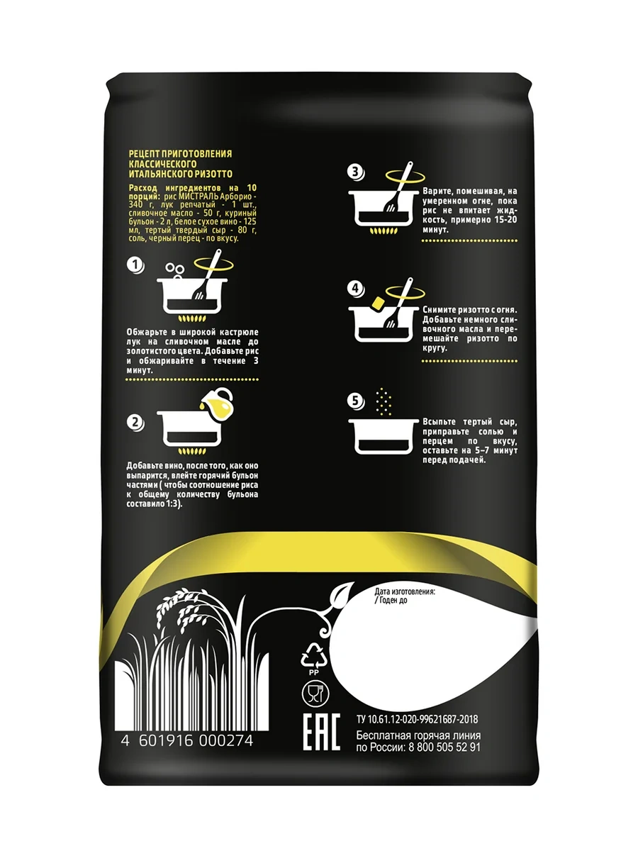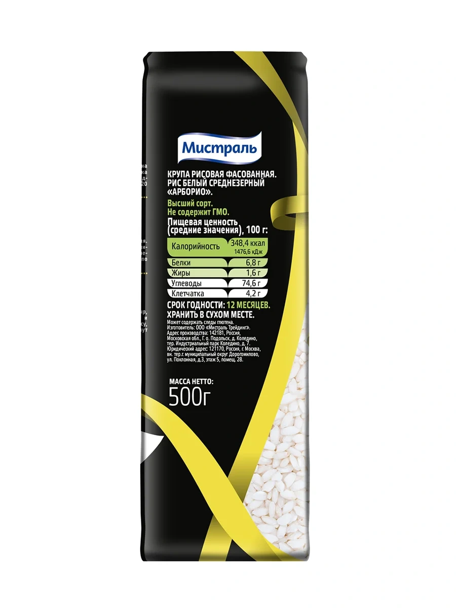 Рис Мистраль Арборио среднезерный белый, 500г