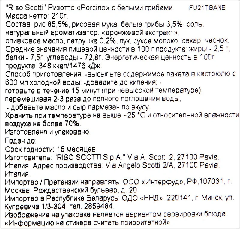 Ризотто Riso Scotti Risotto Porcino с белыми грибами, 210г