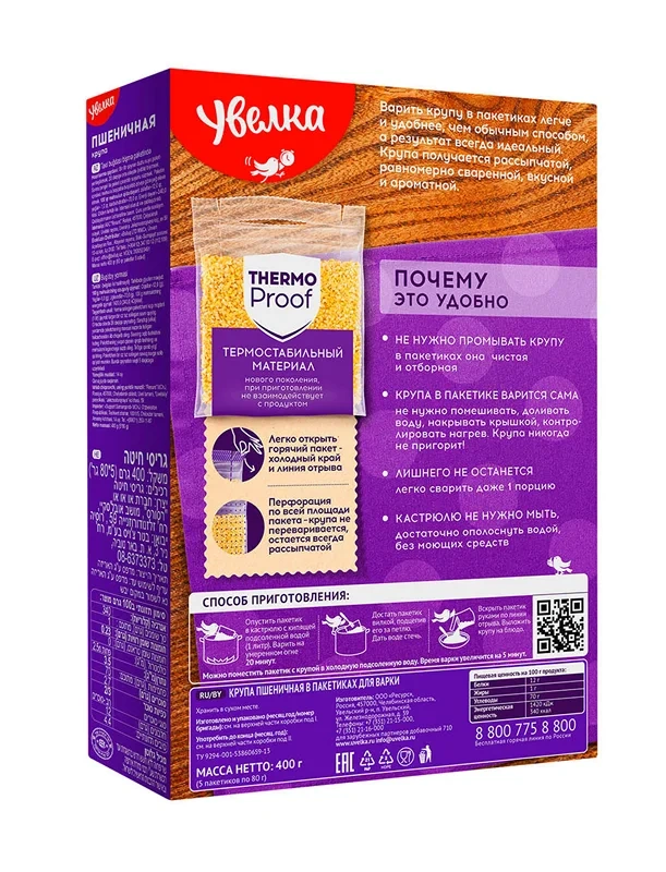 Крупа пшеничная Увелка в пакетах для варки 5шт, 400г