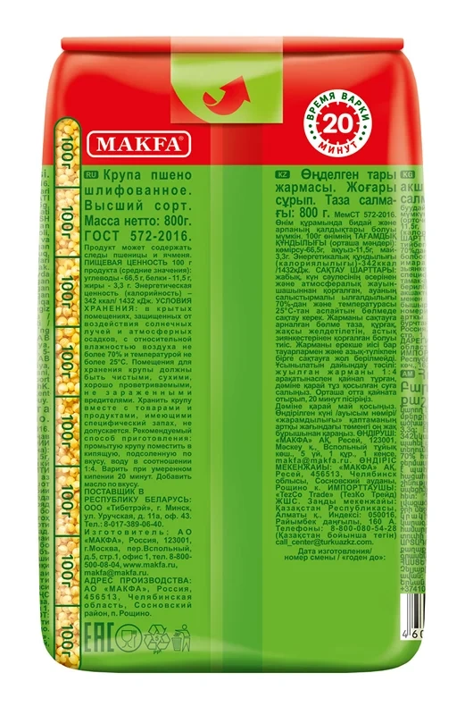 Крупа Makfa пшено шлифованное высший сорт, 800г