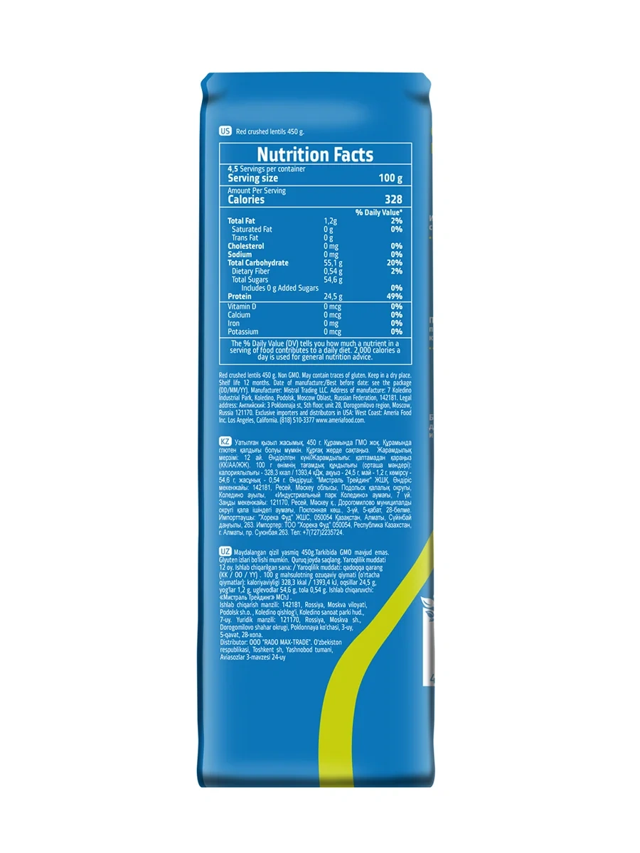 Чечевица Мистраль красная колотая для супов и гарниров, 450г