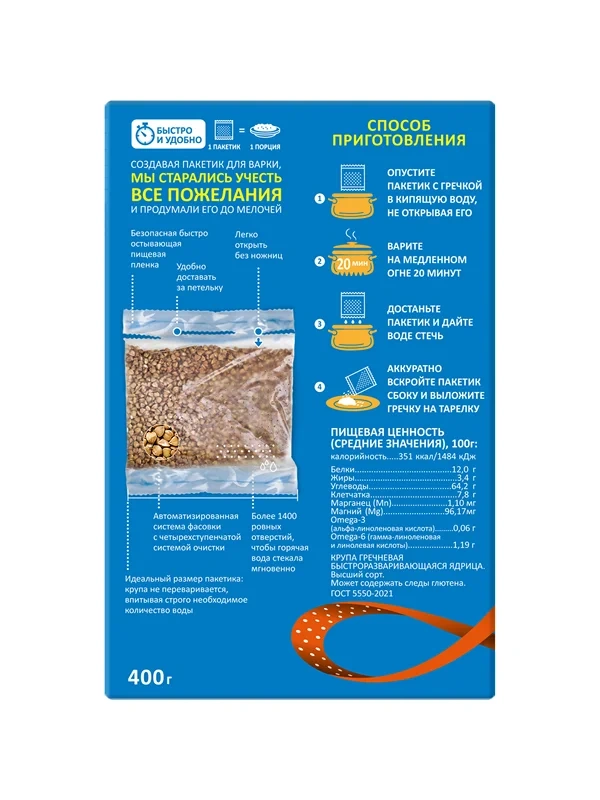 Гречка Мистраль ядрица чистая цельная (80г x 5шт), 400г