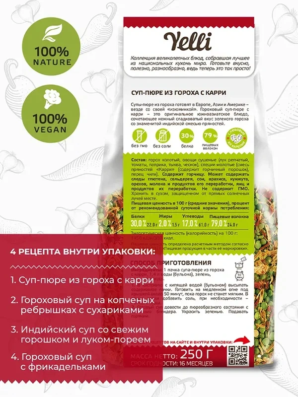 Суп Yelli Тосканский с полбой и томатами, 200г