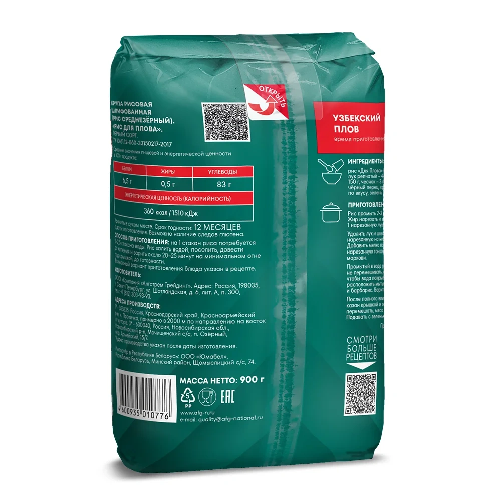 Рис Увелка круглозерный в пакетах для варки 5шт, 400г