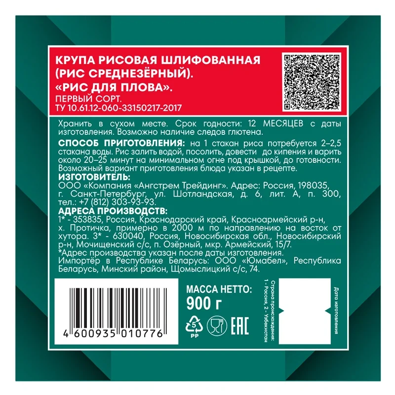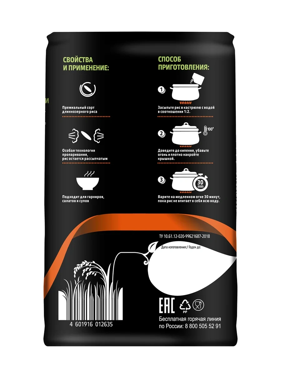 Рис Увелка длиннозерный в пакетах для варки 5шт, 400г