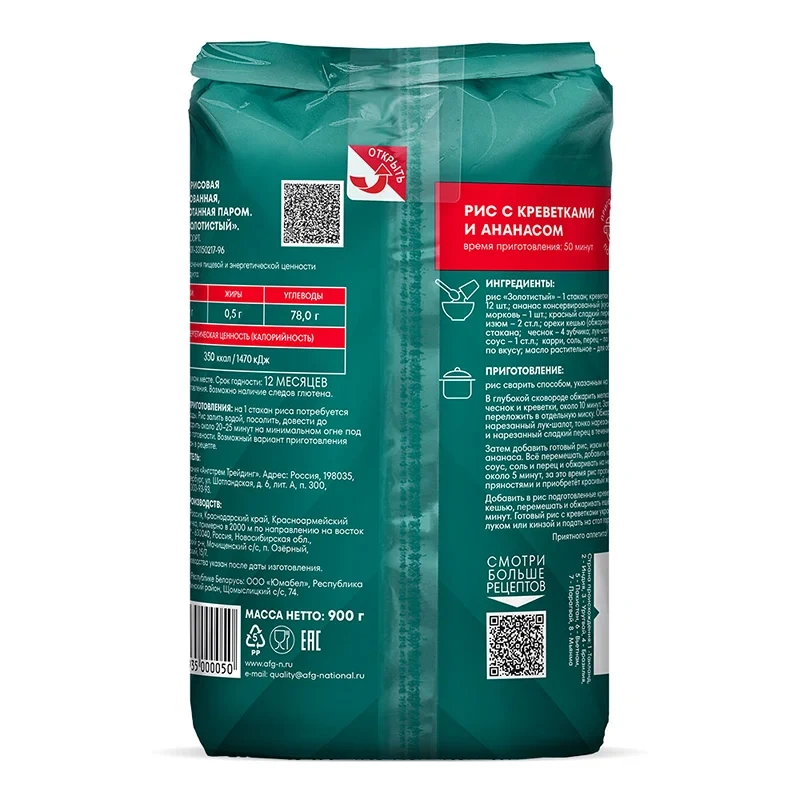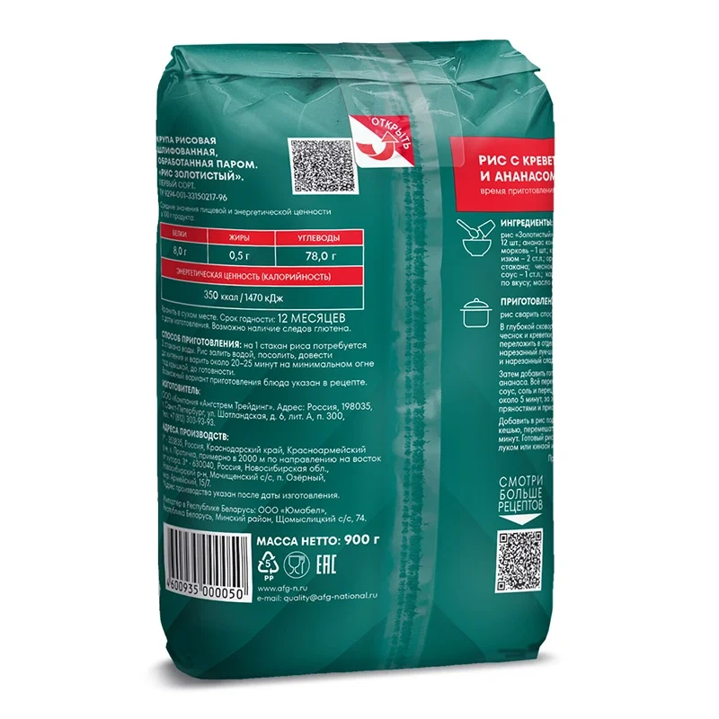 Рис Мистраль Янтарь пропаренный длиннозерный, 5кг