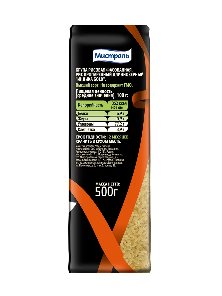Рис Мистраль Индика Gold пропаренный длиннозерный, 500г