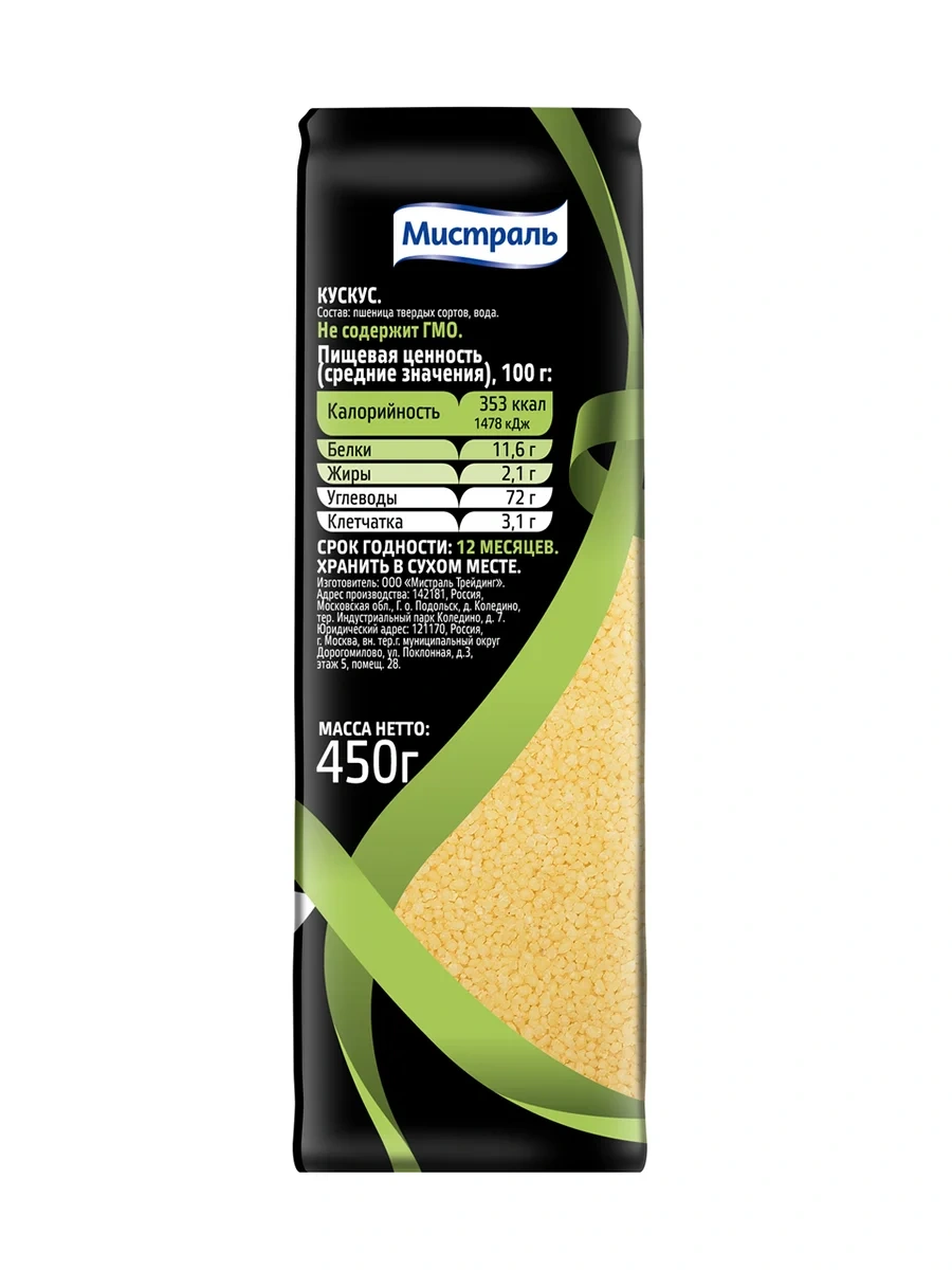 Крупа Мистраль пшеничная из твердых сортов пшеницы Кускус, 450г