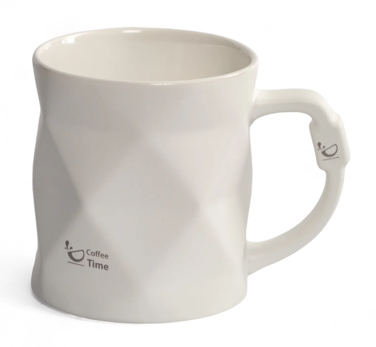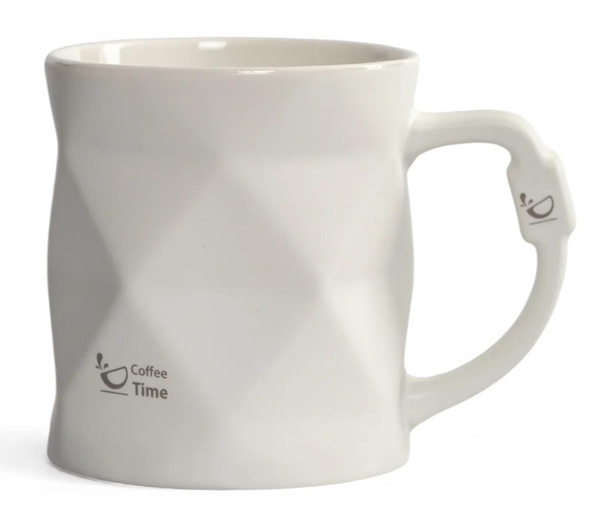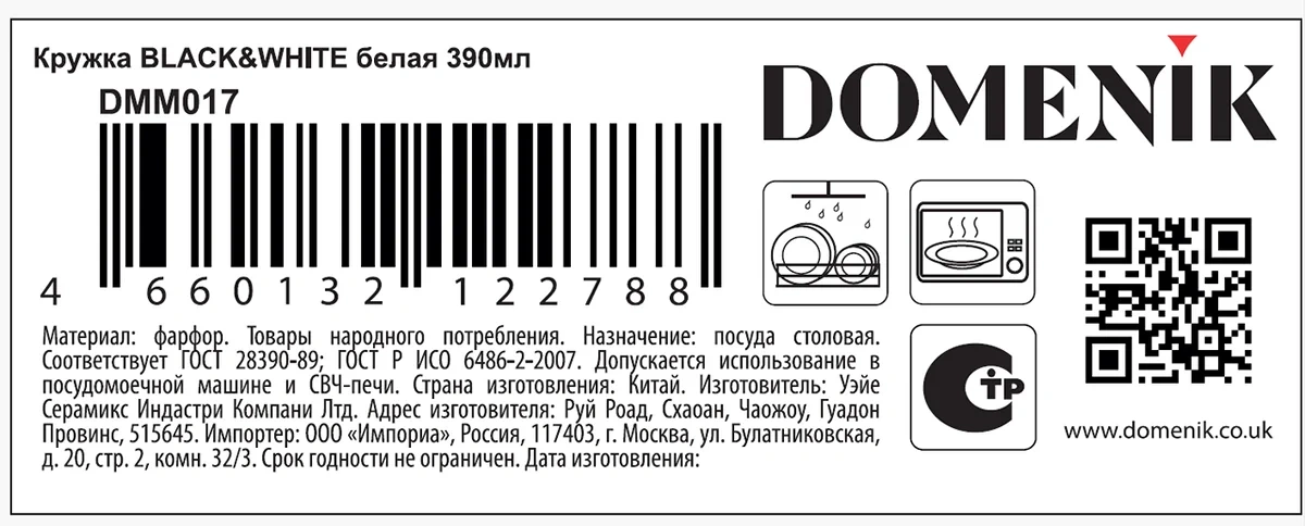 Выполнена из белого фарфора. Она имеет лаконичный дизайн в чёрно-белой гамме, который подойдёт для любого интерьера. Кружка может использоваться как для горячих, так и для холодных напитков.
