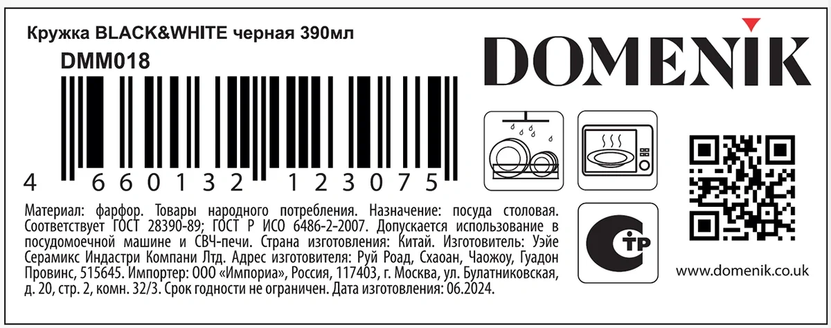 Кружка Domenik Black&White черная, 390мл