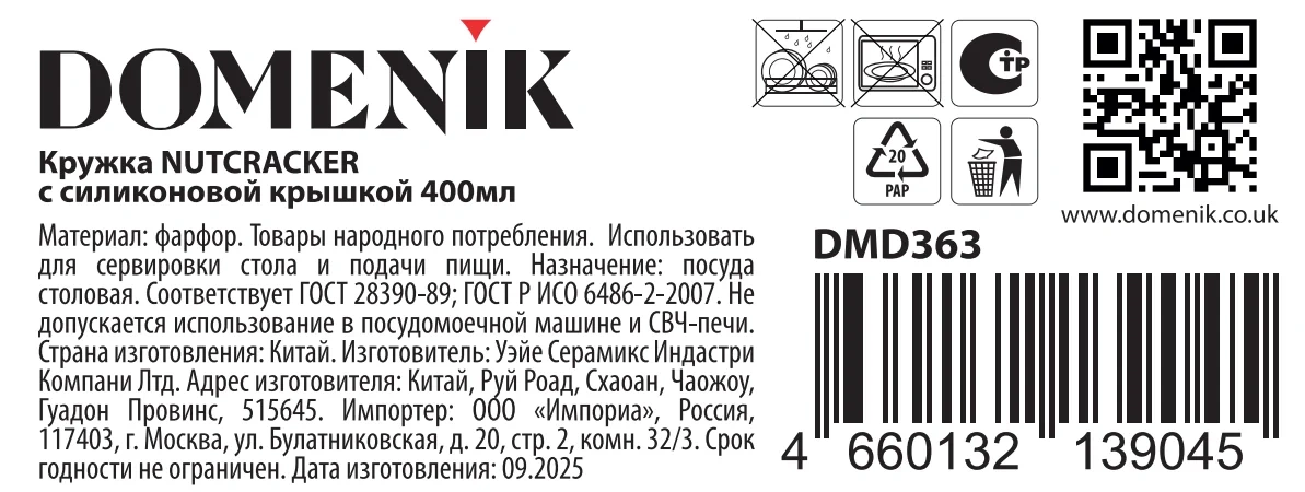 Кружка Nutcracker с силиконовой крышкой 400мл эта очаровательная кружка объемом 400мл станет прекрасным дополнением к вашей коллекции посуды и подарит вам незабываемые моменты уюта и тепла. Эксклюзивная коллекция Nutcracker создана по мотивам любимой всеми истории о Щелкунчике, которая идеально подходит для создания праздничного настроения. Кружка Domenik - это прекрасный выбор для тех, кто ценит красоту и качество в каждой детали.