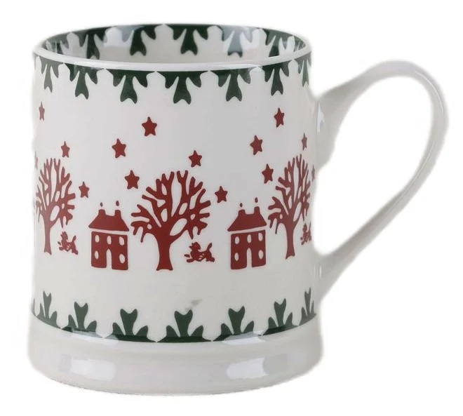Коллекция Calma - это кружки, благодаря которым каждый зимний вечер будет теплым. Кружки изготовлены из фарфора, белый цвет которого отлично сочетается с деколью. Верхний и нижний обод кружки украшен листьями остролиста. Красным выполнены деревья, дома и радостная собака. Небольшие звезды красного цвета завершают рисунок. Деколь защищена глазурью, рисунок не потускнеет и не сотрётся со временем. Изделия подходят для использования в микроволновой печи и для мытья в посудомоечной машине.