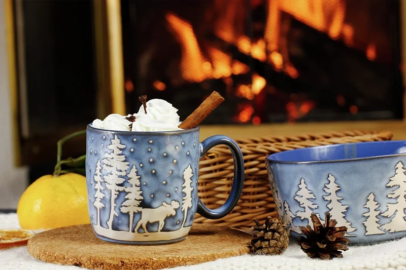 Fabula - коллекция новогодней праздничной столовой посуды, которая одинаково хорошо будет смотреться на столе в течении всего года. Выполнена из каменной керамики. Окрашена по специальной технологии - методом реактивной глазури, поэтому каждый предмет на столе будет уникальным. Различные изображения сказочного зимнего леса создадут уют на праздничном столе. Рисунки елей и домиков на посуде приятны глазу и ощутимы при прикосновении. Деколь защищена глазурью, рисунок не потускнеет и не сотрётся со временем. Все предметы коллекции подходят для мытья в посудомоечной машине и использования в микроволновой печи. Кружка подходит для подачи любых горячих напитков.