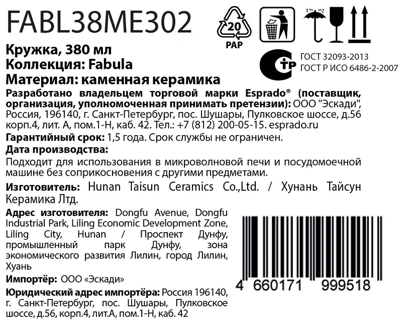 Кружка Esprado Fabula, 380мл