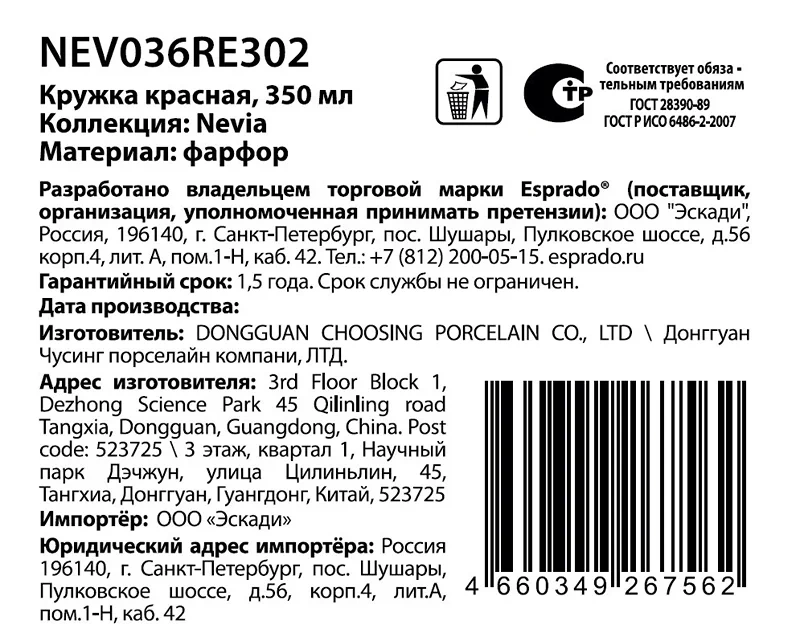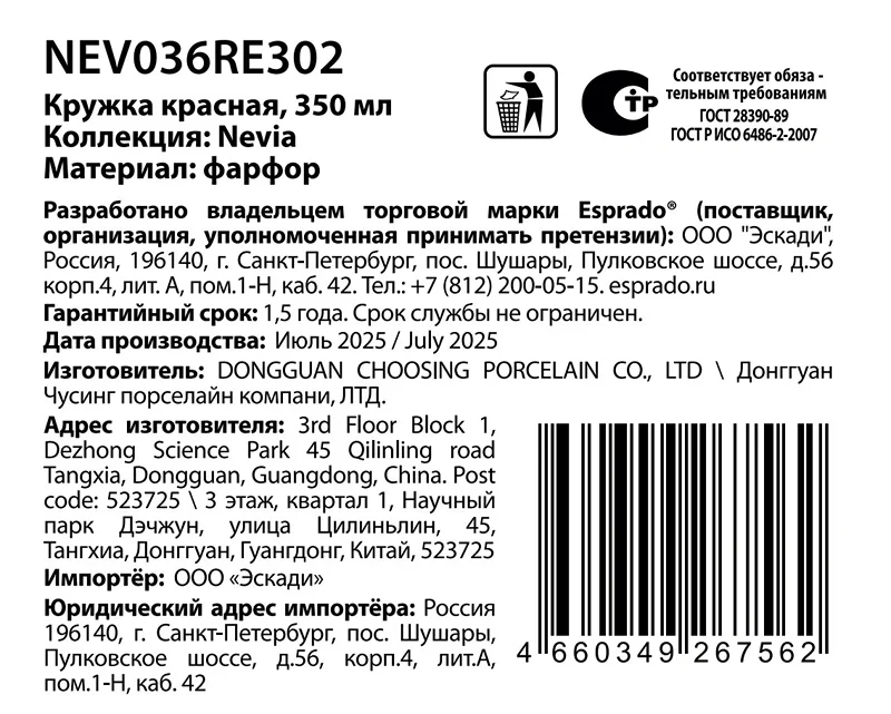 Кружка Esprado Nevia красная, 350мл