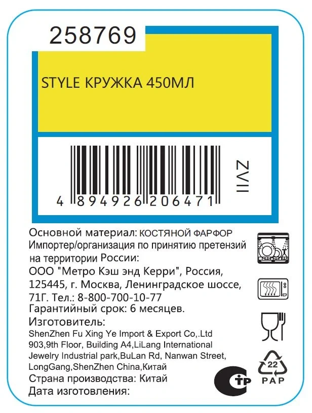 | Комплектация | кружка - 1 шт. |