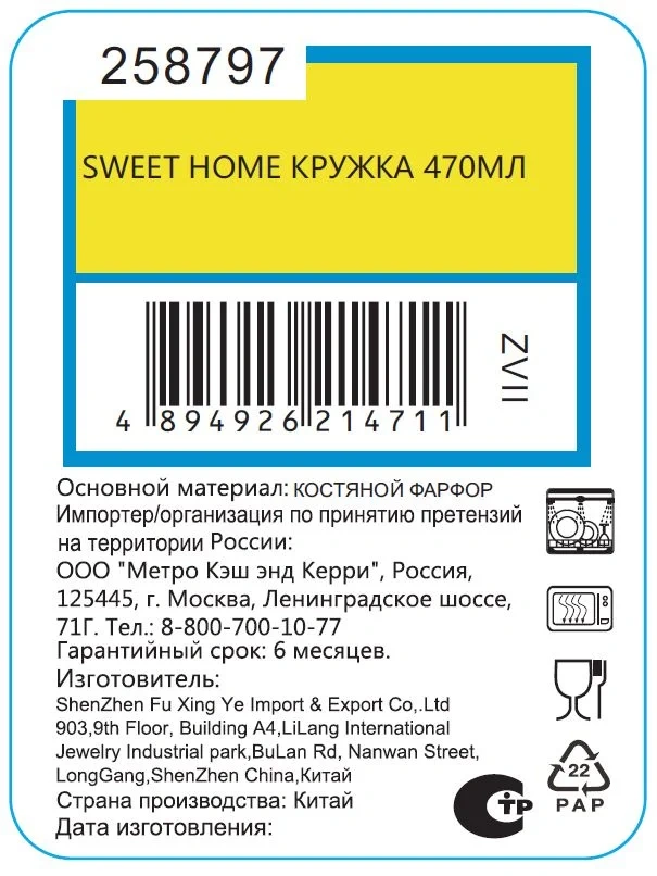 | Комплектация | кружка - 1 шт. |