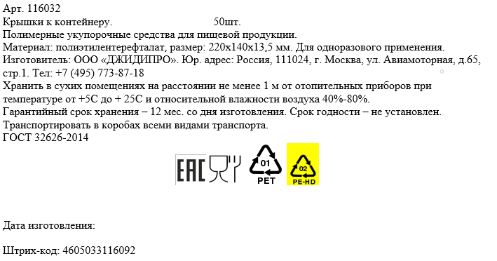 | Комплектация | крышка к контейнеру - 50 шт. |