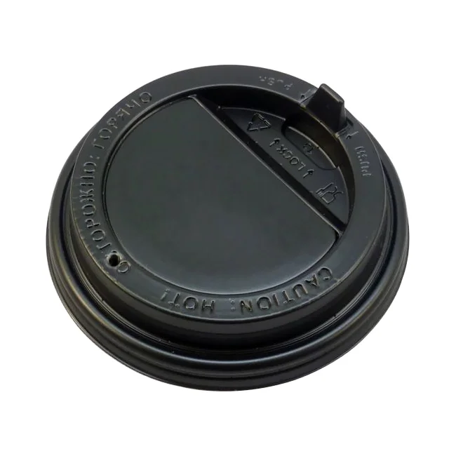 Крышка для одноразовых стаканов Протэк с носиком d=80мм, черная, 100шт/уп