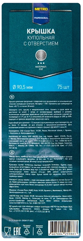 Качественная и удобная крышка, предназначенная для бумажных стаканов. Она имеет диаметр 90 мм, что позволяет использовать ее со стаканами с соответствующим диаметром горловины.