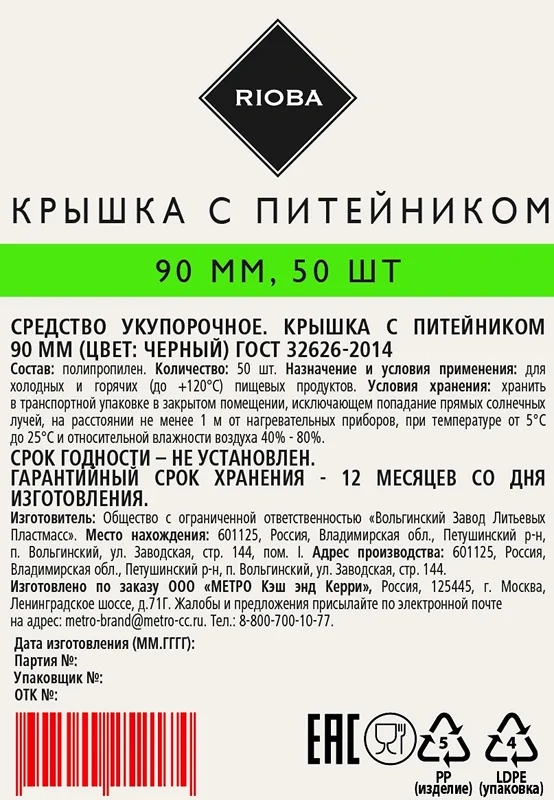 Отзывы о «Крышка для одноразовых стаканов Озлп/взлп TL90 d=90мм, темно-зеленая, с закрывающимся носиком, 50шт/уп»