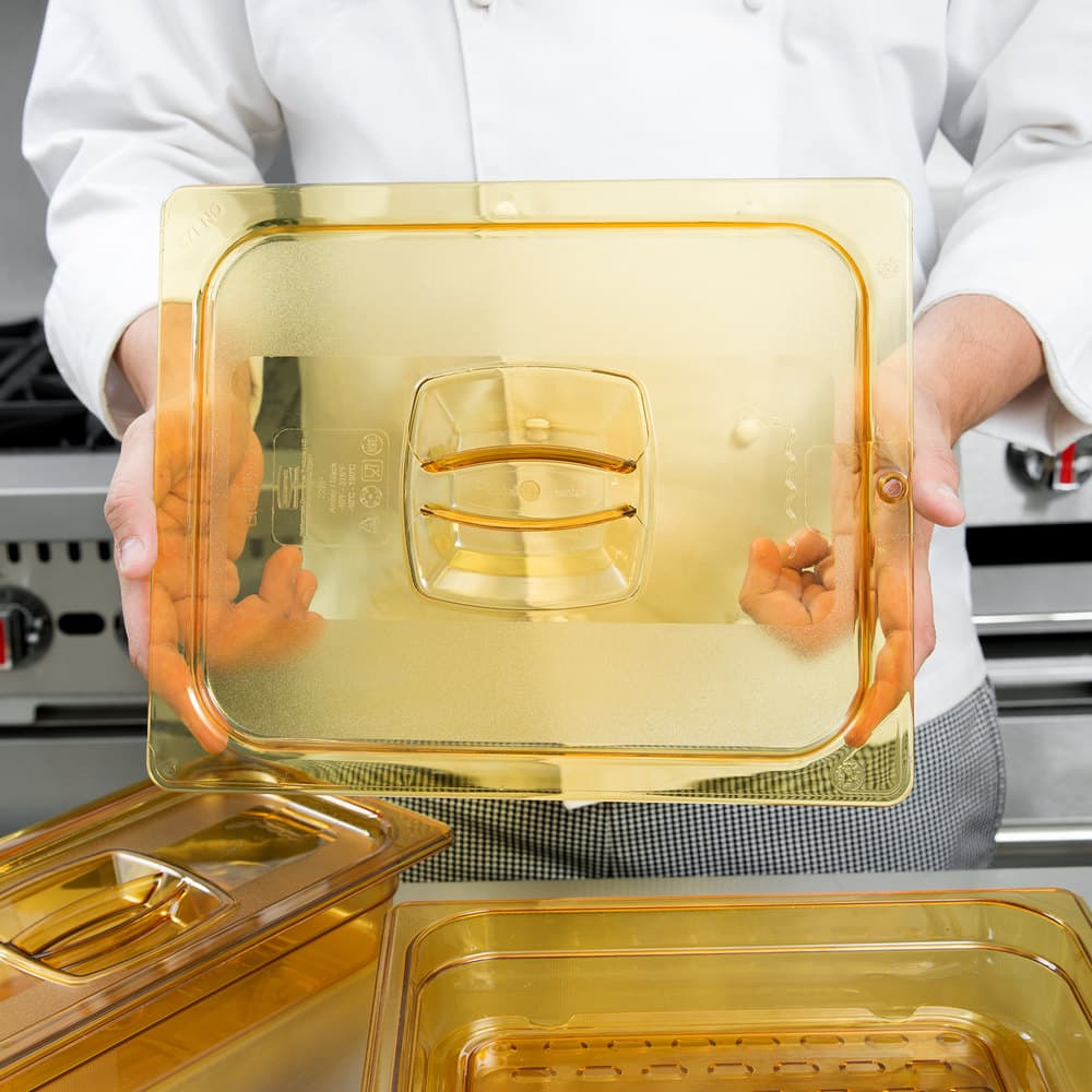 Крышка для поддона для горячих продуктов Rubbermaid GN1/2 янтарная, с отверстием для подвешивания, FG228P23AMBR