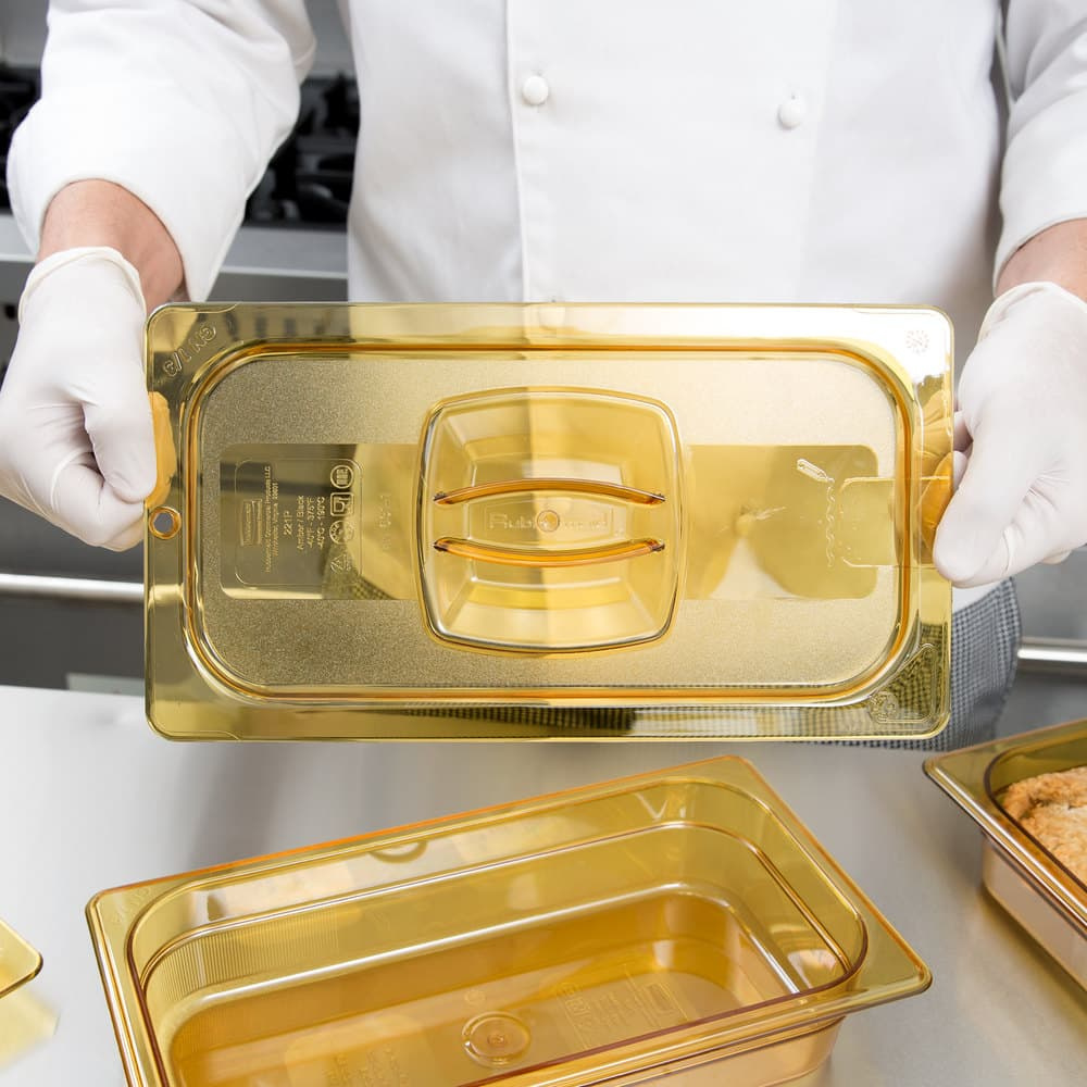 - Крышки Rubbermaid Gastronorm можно перемещать из холодильника в микроволновую печь м затем сразу в воду.
