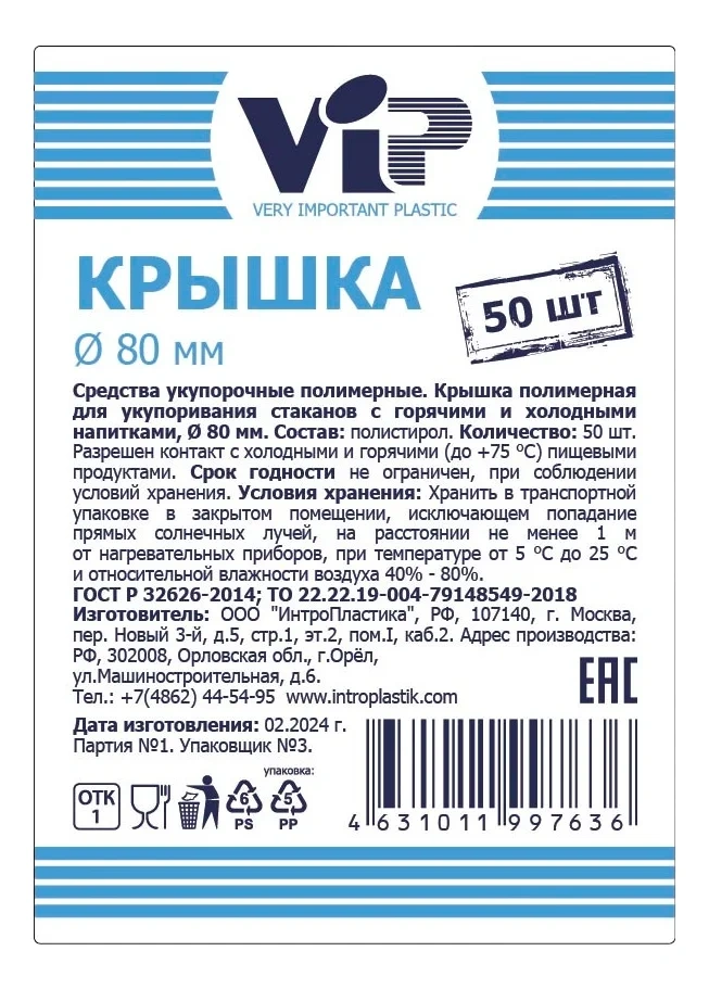 | Комплектация | крышка для стаканов - 50 шт. |