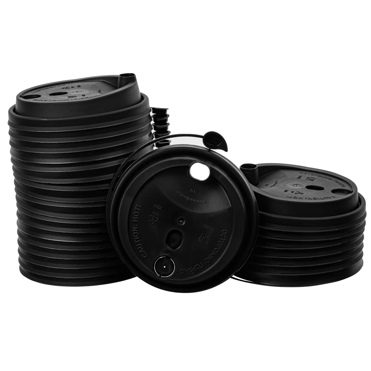 Крышка для стакана одноразовая Vzlp с питейником матовая пластиковая черная 9см, 50шт