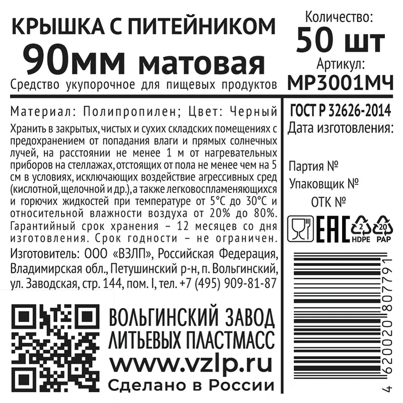 Крышка подходит к одноразовыми стаканами: 242701_Стакан пластиковый Vzlp глянцевый прозрачный, 300мл x 20шт; 242692_Стакан пластиковый Vzlp глянцевый прозрачный, 375мл x 20шт; 242703_Стакан пластиковый Vzlp глянцевый прозрачный, 500мл x 20шт; 242705_Стакан пластиковый Vzlp глянцевый прозрачный, 650мл x 20шт; 242702_Стакан пластиковый Vzlp матовый прозрачный, 375мл x 20шт; 242694_Стакан пластиковый Vzlp матовый прозрачный, 500мл x 20шт; 242695_Стакан пластиковый Vzlp матовый прозрачный, 650мл x 20шт. Крышка с питейником 90мм матовая черного цвета - идеальное решение для кофеен, ресторанов и кафе. Эта крышка, изготовленная из высококачественного полипропилена, предназначена для использования с бумажными и пластиковыми стаканами для горячих и холодных напитков диаметром 90мм. Крышка имеет отверстие для трубочки и специальную заглушку, которой можно закрывать отверстие питейника. Использование крышки с питейником является оптимальным и удобным способом предотвратить проливание напитка и обеспечить его безопасность при транспортировке. Матовая поверхность крышки придает ей элегантный вид, а черный цвет добавляет роскоши и стиля. Крышка надежно фиксируется на стакане, предотвращая протекание жидкости и сохраняя аромат и тепло напитка внутри.Крышка соответствует высоким требованиям профессионалов в области гостеприимства и поможет обеспечить высокий уровень сервиса для ваших посетителей. Для стаканов с кофе и горячими напитками. Произведены методом литья под давлением, благодаря чему имеют точные размеры, а значит очень плотно садятся на стакан и защищают от протечек.