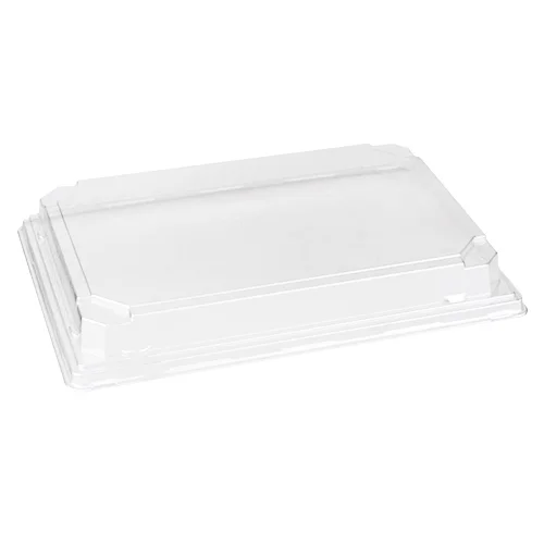 Классическая прямоугольная крышка к контейнеру для суши обеспечит превосходный обзор продукта при выкладке на полке, а так же сохранит внешний вид деликатесов.