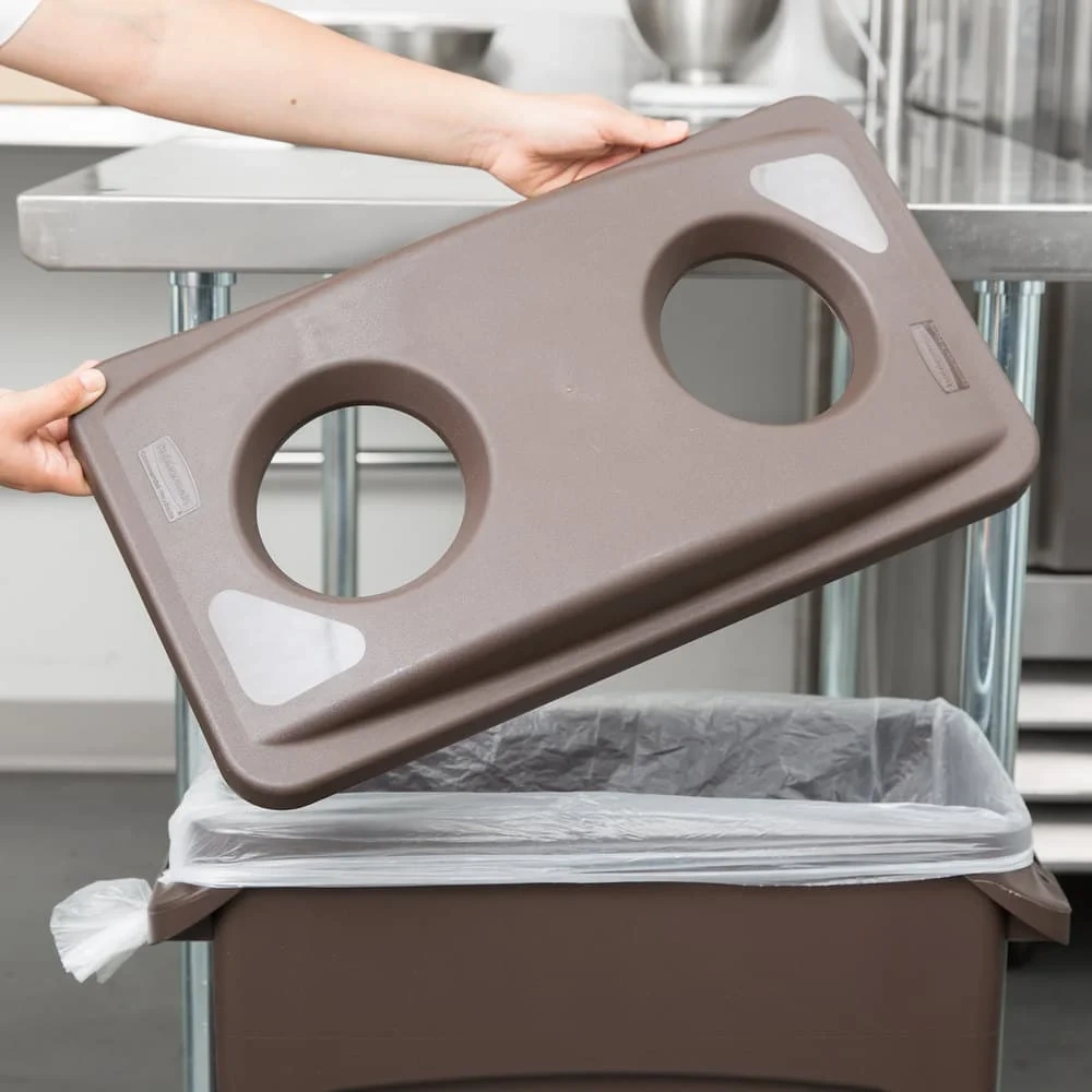 Крышка с отверстиями для бутылок и банок,, для контейнеров SlimJim моделей FG3540 и 1971258. Предназначена для раздельной утилизации мусора. Позволяет утилизировать мусор и скрывать содержимое контейнера.