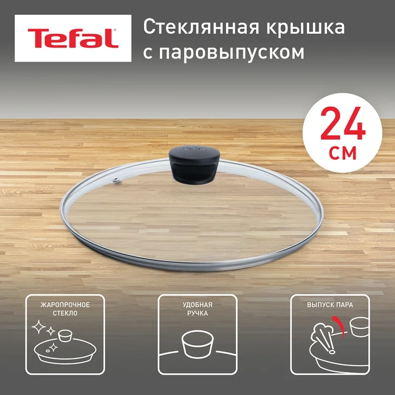 Крышка Tefal стеклянная, 24 см представляет собой незаменимый аксессуар на кухне, который отличается высоким качеством, прочностью и большим сроком службы. Основным материалом крышки является прозрачное термостойкое стекло, за счет которого вы сможете удобно наблюдать за процессом приготовления без необходимости открывать посуду. Также модель оснащена ободком из нержавеющей стали, который обеспечивает надежность конструкции и защиту стекла от сколов и других повреждений. Благодаря используемым материалам изделие может использоваться в холодильниках, а также очищаться в посудомоечных машинах. Для удобства использования в крышке предусмотрена эргономичная ручка из пластика. Среди основных достоинств этого материала можно отметить низкую теплопроводность и долговечность. Кроме того, модель оснащена отверстием для выпуска пара.