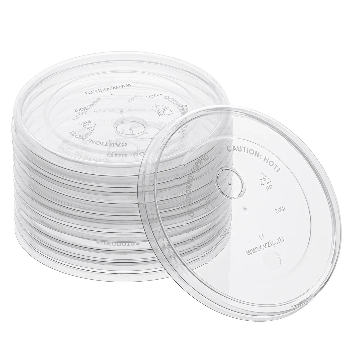 Крышка для одноразовых стаканов Взлп плоская прозрачная, d=90мм, с отверстием, 50шт/уп