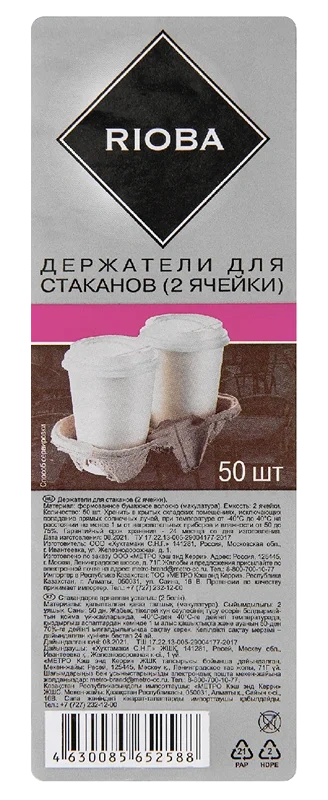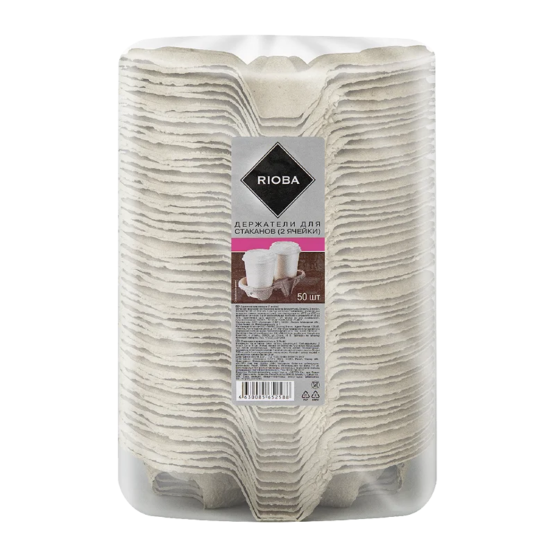 Держатели для стаканов Rioba картонный, 2 секции, 50шт/уп