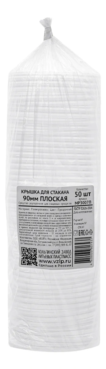 Крышка для стакана одноразовая Vzlp пластиковая прозрачная 9см, 50шт