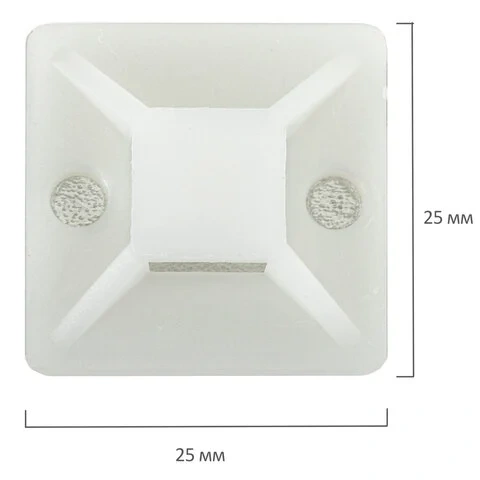 Площадка самоклеящаяся для крепления стяжки (хомута) 25х25 мм, КОМПЛЕКТ 100 штук, белая, SONNEN, 607