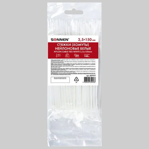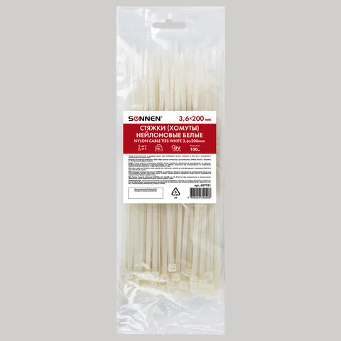 Стяжки (хомуты) нейлоновые сверхпрочные НАБОР 150 шт. (2,5х100/150 мм; 3,6х200 мм), белые, SONNEN, 6