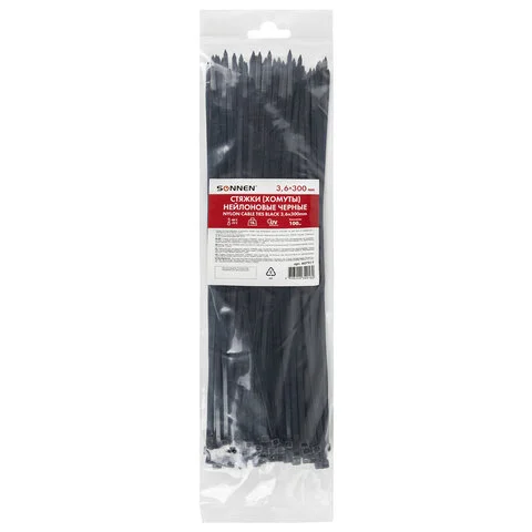 Стяжка (хомут) нейлоновая сверхпрочная POWER LOCK, 3,6x300 мм, КОМПЛЕКТ 100 шт., черная, SONNEN, 607