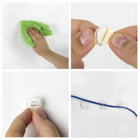 Крючки самоклеящиеся из прозрачного пластика предназначены для крепления гирлянд и проводов в различных местах дома. Они позволяют размещать декоративные аксессуары и сезонные украшения на стенах, потолке и мебели.
