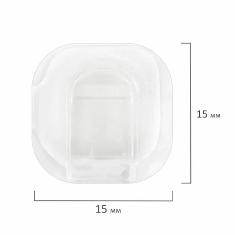Комплект включает 18 штук. Цвет – прозрачный. Размер основания крючка – 1,5 x 1,5 см. Поставляется в блистере с европодвесом.