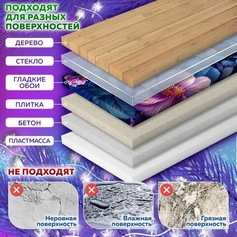 Изготовлены из прозрачного пластика с акриловым клеем на обратной стороне. Крепятся на любую гладкую, твердую и ровную поверхность: дерево, плитку, металл, стекло, гипсокартон, окрашенные стены. Не требуют сверления, легко фиксируются и удаляются без следов.