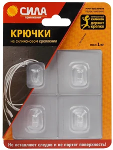 Важное достоинство крючков — инновационная система крепления. Крючки на силиконовом креплении — система многоразового использования, без гвоздей, шурупов, клея и клейких полосок. Предназначены только для гладких поверхностей, таких как плитка, кафель, стекло, пластик, ламинированные поверхности мебели и т. д. В отличие от аналогов возможна повторная фиксация неограниченное количество раз. Для удаления крючка с поверхности необходимо просто аккуратно потянуть за край подложки. Крючки на силиконовой основе Сила работают по принципу лапок геккона — плотно фиксируются на любой плоской поверхности не теряя свои свойства даже после многократного применения! Неважно где первоначально был размещен крючок, вы легко можете переместить его на новое место. Размеры крючка: диаметр 7мм, высота 8 мм. Условия хранения: при хранении избегать воздействия прямых солнечных лучей.