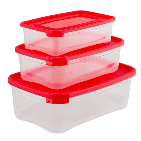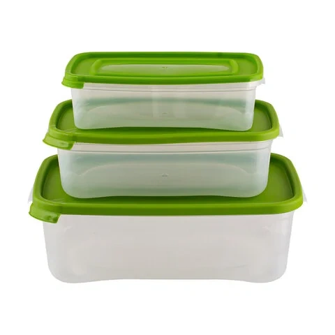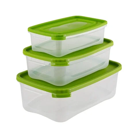 Контейнер пищевой КОМПЛЕКТ 3 шт.: 0,7 л, 1,2 л, 2,2 л, ланч бокс, КАСКАД, прозрачный/зеленый, 59003,