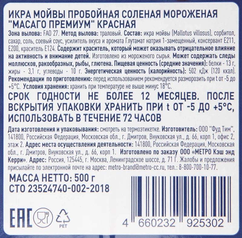 METRO Chef Икра масаго премиум красная замороженная, 500г